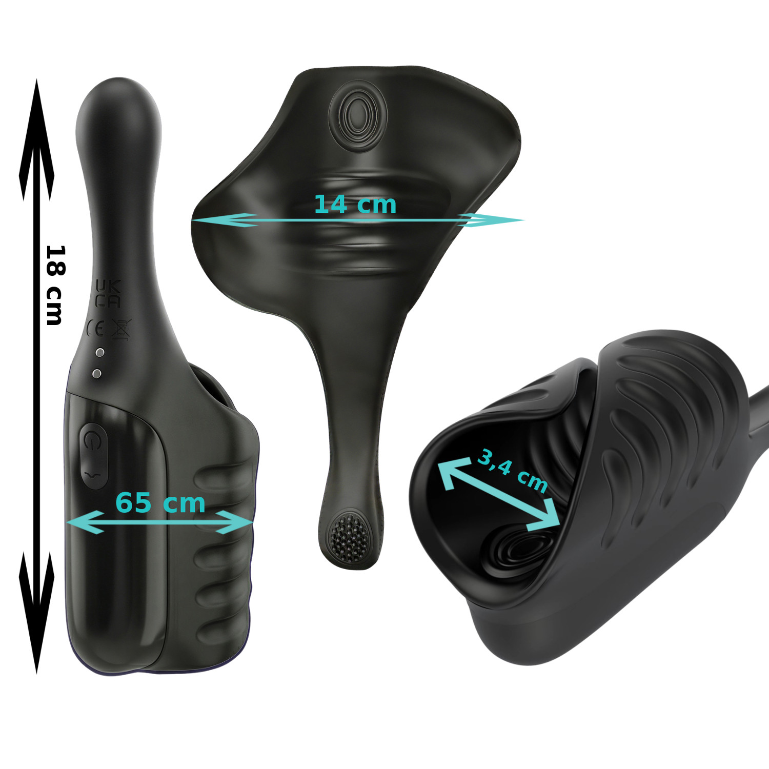 - Wibracje: 10 programów masażu penisa, 1 silniki wibrujący, 5 programów uderzeń – 1 silnik uderzeniowy, oba silniki sterowane są osobnymi przyciskami