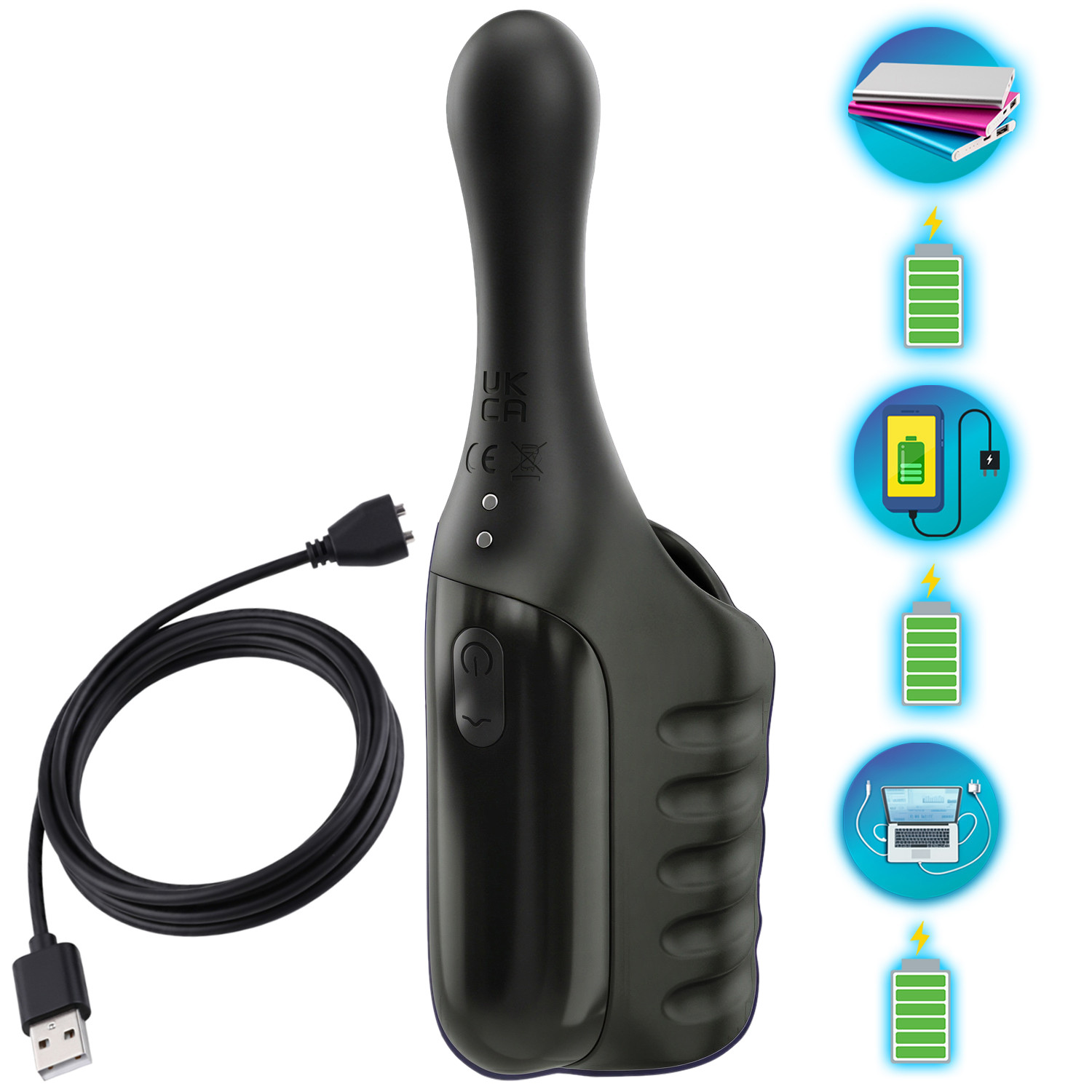 Masturbator zasilany jest poprzez wbudowany akumulator, można naładować go poprzez dołączony do zestawu magnetyczny kabel USB.