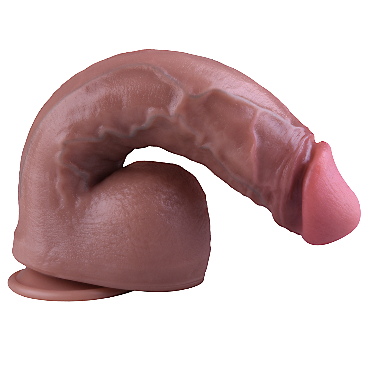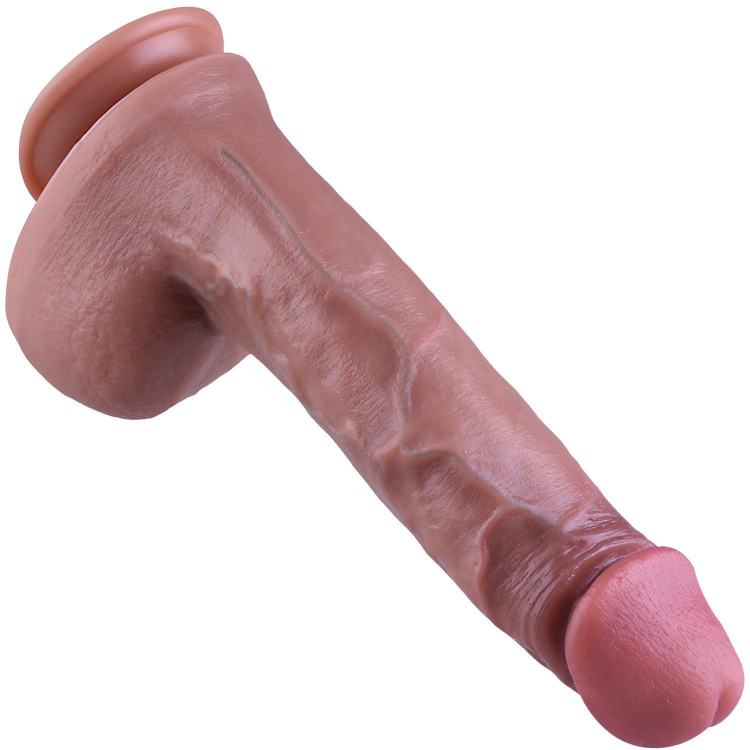 GRUBY BRĄZOWY PENIS Z JĄDRAMI I PRZYSSAWKĄ, DUŻE DILDO, WIELKI DONG, ELASTYCZNY SZTUCZNY CZŁONEK – REALISTYCZNY PENIS NA PRZYSSAWCE – SILIKON DWUWARSTWOWY