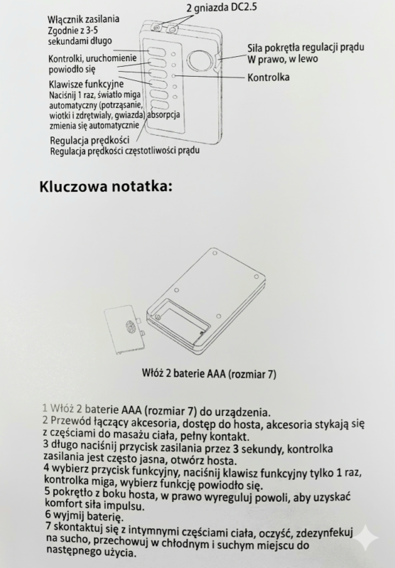 - Zasilanie: 2 x AAA (brak w zestawie)