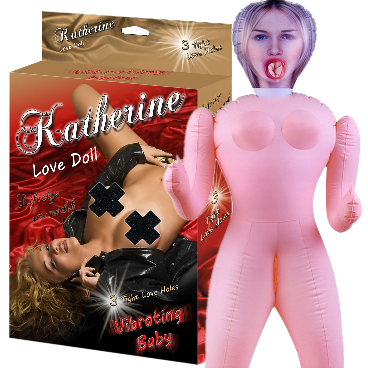 Rozgrzewająca do czerwoności lalka Katherine, idealna jako prezent lub pożytecznie chętna na wieczorne dni. Wystarczy odrobina wyobraźni, a możesz z nią spędzić wiele pięknych chwil. Jej ogromny biust sprawii że możesz pomylić ją z prawdziwą kobietą – uważaj by nie zatracić się w miłosnym uniesieniu!