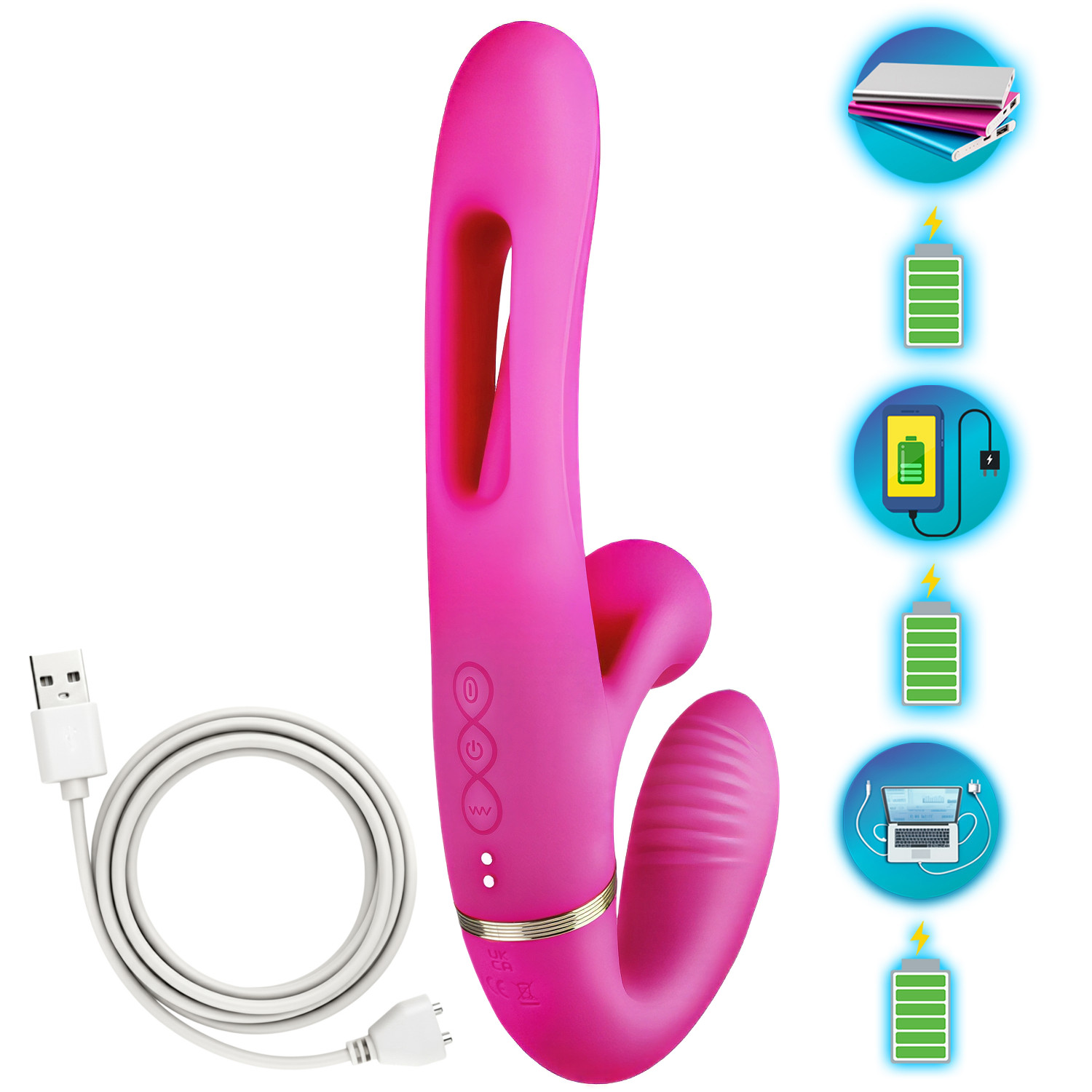✅ Oferowany wibrator wielofunkcyjny posiada wbudowany akumulator ładowany za pośrednictwem magnetycznego kabla USB (dołączony do zestawu).
