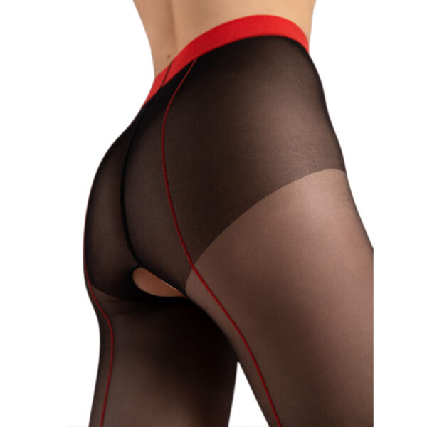 Rajstopy z Otworem Fiore Firelight 20DEN z Czerwonymi Wstawkami
