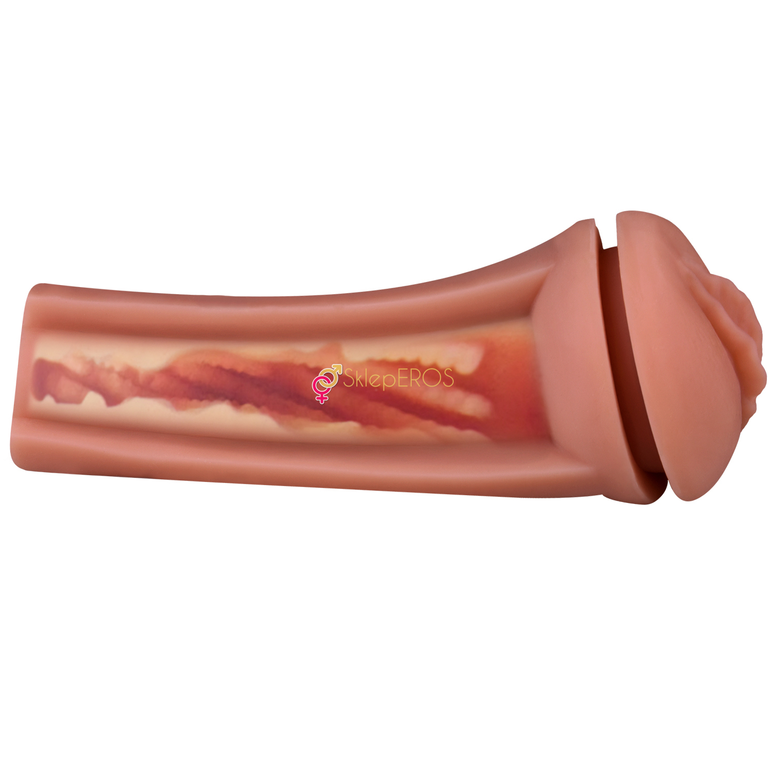 - Realistyczna pochwa z cyberskóry – wykonana z materiału Cyberskin, imitującego ludzki dotyk, z idealnie wymodelowanymi kobiecymi wargami.