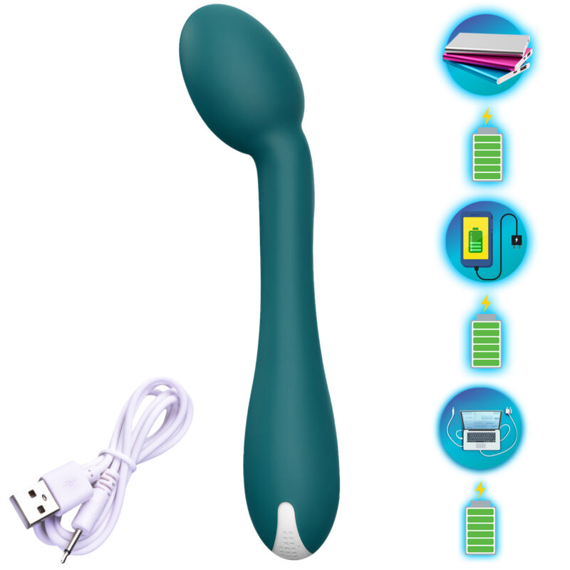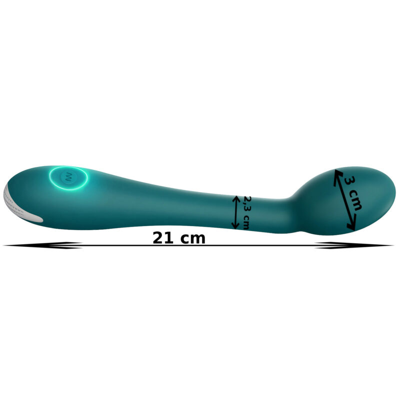 Wibrator Kobiecy do Punktu G w eleganckim kolorze butelkowej zieleni to propozycja dla kobiet, które pragną odkryć głęboką, pulsującą przyjemność i doświadczyć intensywnych orgazmów. Pokryty przyjemnym w dotyku silikonem, zachwyca nie tylko wyglądem, ale także funkcjonalnością. Subtelnie zdobiona rączka nadaje mu ekskluzywny charakter, a ergonomiczny kształt sprawia, że idealnie dopasowuje się do kobiecej anatomii.